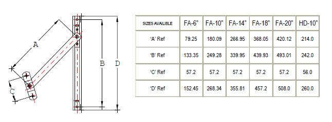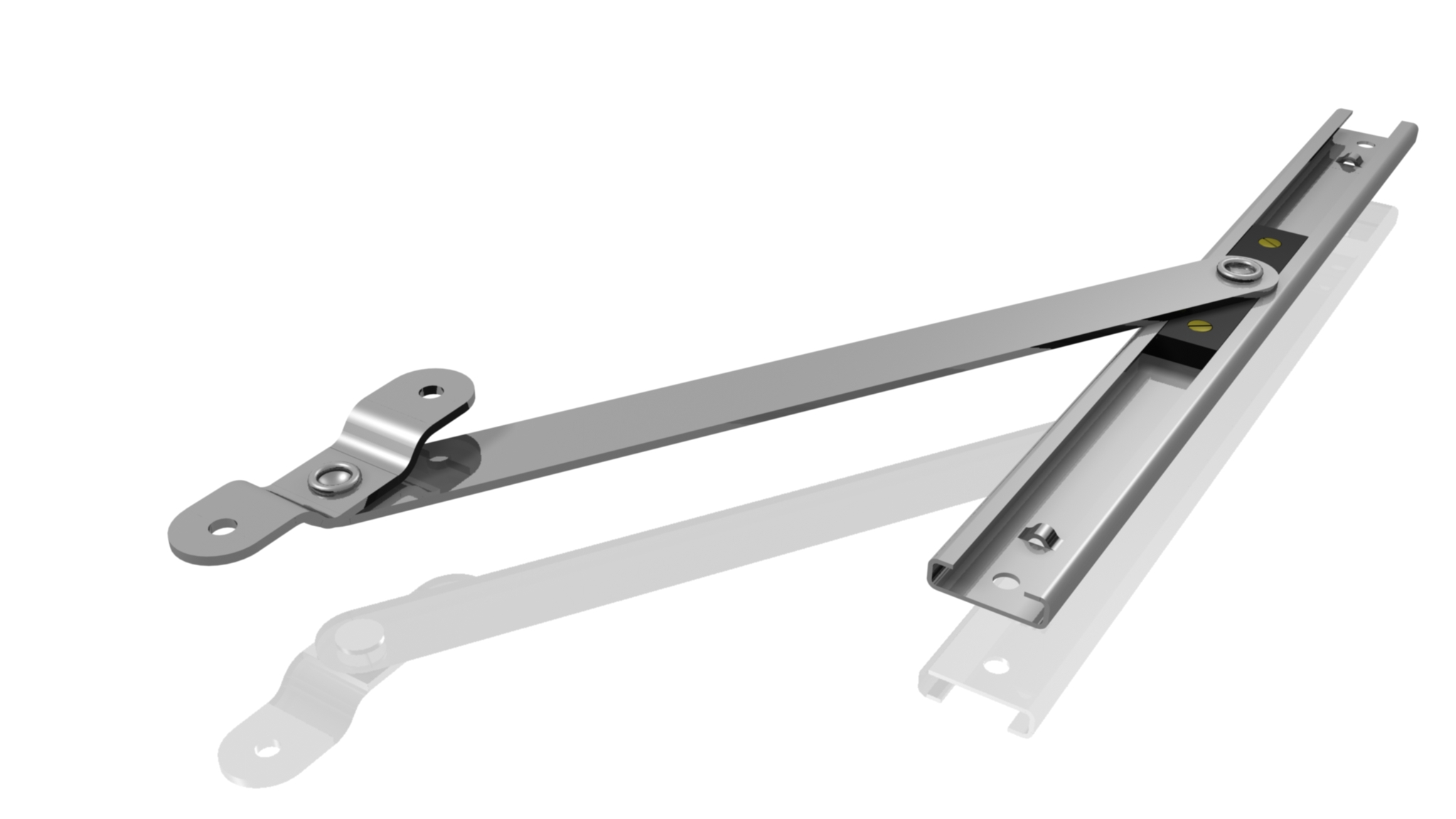 For large top hung vents the friction arm can be used as an extra support by fitting it below the existing friction stay. This has the effect of limiting the opening as well as adding greater stability to the window. Available in standard form at 180mm long the friction arm can also be supplied in different sizes to suit customers' specific requirements. Details available on request.